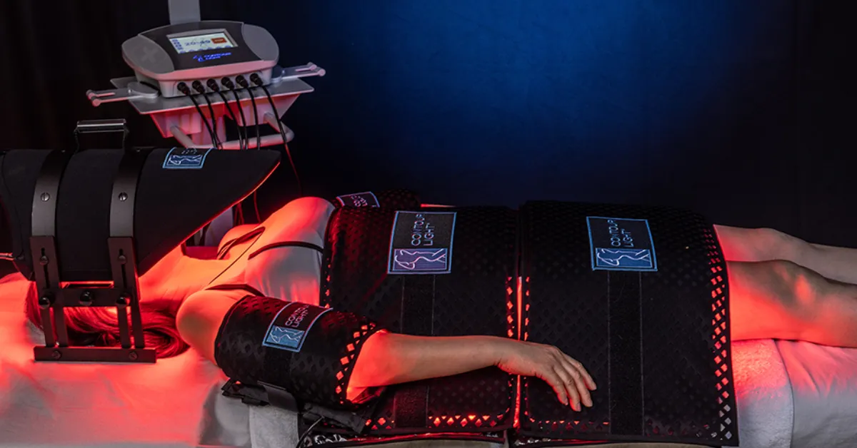 Red light therapy uses LED's that emit red and near-infrared light on top of the skin which sends specific wavelengths of light to the unwanted fat underneath. Empirical tests have shown that this red light effectively shrinks fat cells and improves skin health.